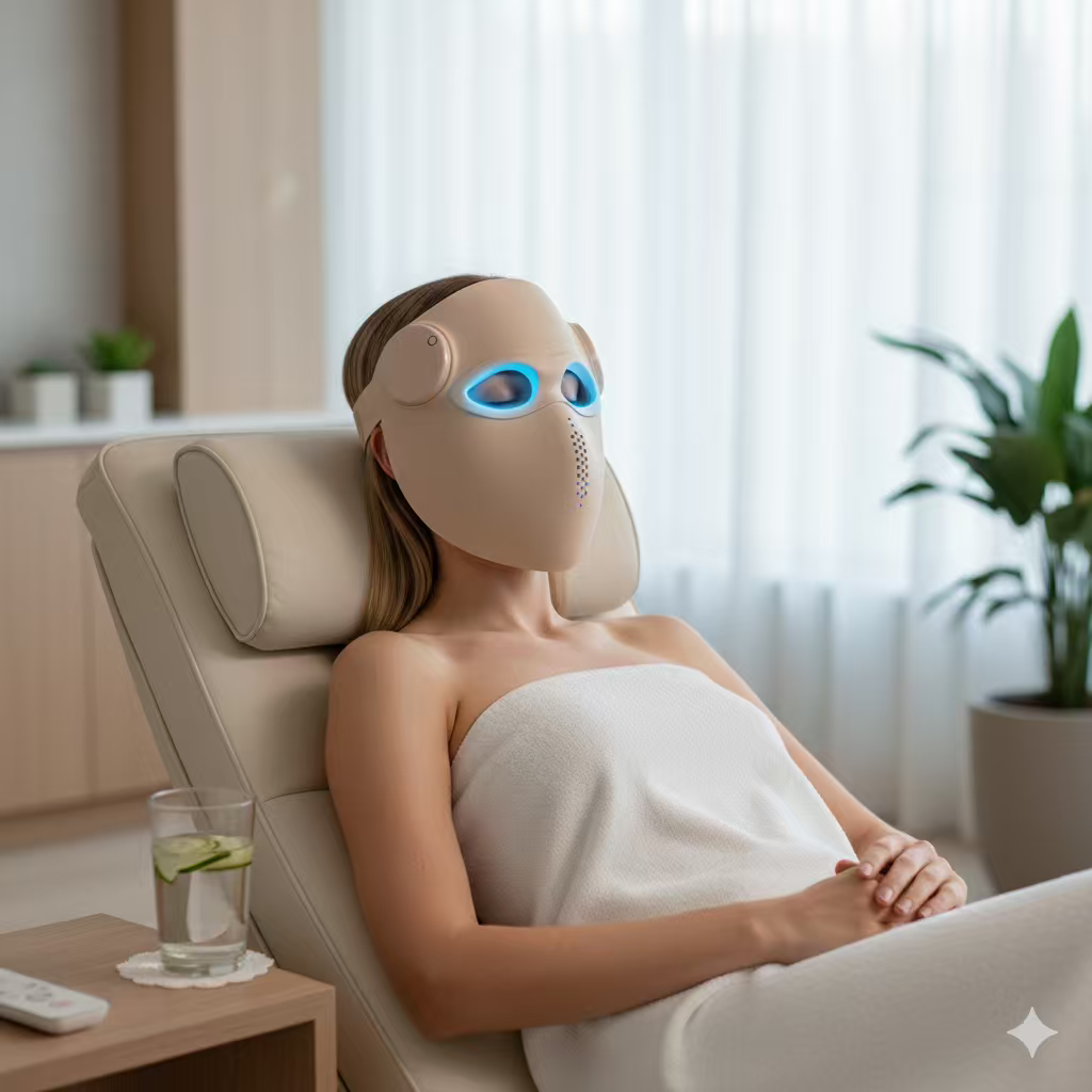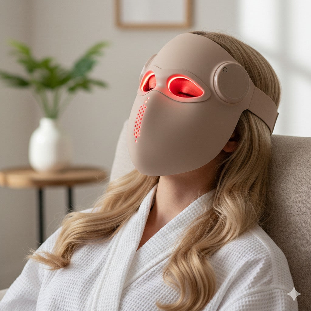 - Collagen + elastin upregulation: 630nm red light activates fibroblasts strengthening skin structure and reducing fine lines over time